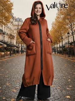 Дубленка еврозима с капюшоном. Демисезонное пальто длинное