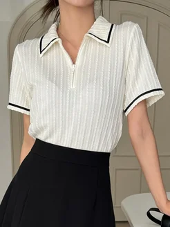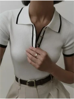 Футболка поло с коротким рукавом в рубчик