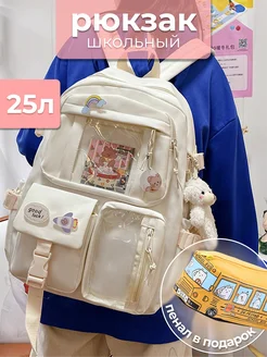 Рюкзак школьный бежевый с медведем корейский Y2K