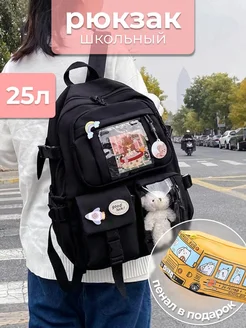 Рюкзак школьный черный с медведем корейский Y2K