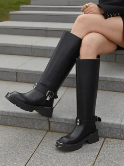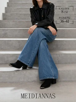 Сапоги трубы демисезонные кожаные на низком каблуке