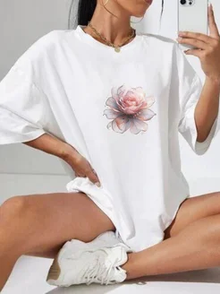 Футболка оверсайз с цветочным принтом удлинённая