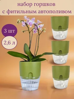 Кашпо горшки для цветов с фитильным автополивом 3 шт 2,6 л
