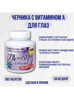 Черника + витамин А, для глаз и зрения, 180 шт. СГ 15.04.26
