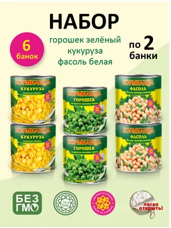 Горошек Кукуруза Фасоль белая консервированные 6 банок
