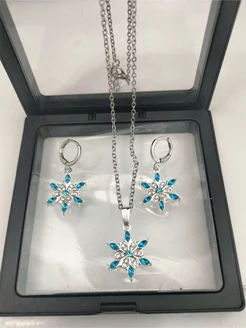 Серьги и подвеска на цепочке Снежинки