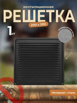 Решетка вентиляционная 200х200 с сеткой, черная