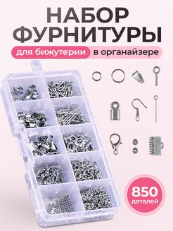 Набор фурнитуры для бижутерии и создания украшений, платина