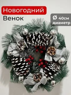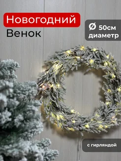 Новогодний венок d50 с подсветкой на дверь заснеженный литой