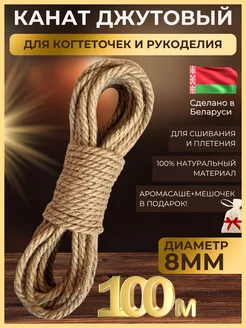 Веревка джутовая 8мм канат для когтеточки и рукоделия 100м
