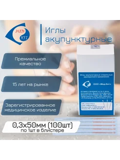 Иглы акупунктурные стерильные 0,3х50 мм, 100 игл