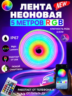 Гибкая неоновая лента USB 5 метров RGB от телефона