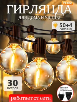 Ретро гирлянда лампочки уличная садовая 30 м 50 led