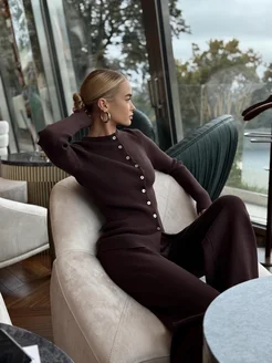 Костюм с брюками трикотажный вязаный лапша