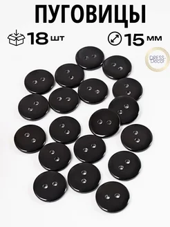 15 мм пуговицы черные глянцевые 2 прокола 18 шт