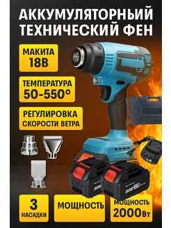 Технический строительный фен аккумуляторный термофен 2 акб