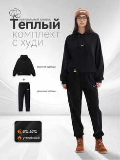 Спортивный костюм с капюшоном начес с принтом брендоваЯ