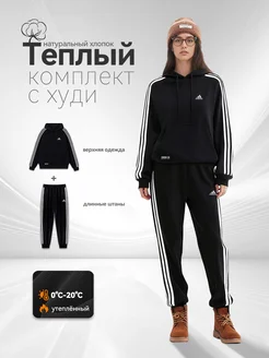 Костюм оверсайз теплый с начесом с принтом брендоваЯ