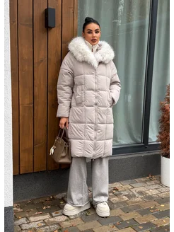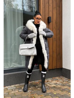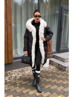 Куртка зимняя длинная с капюшоном с мехом пуховик