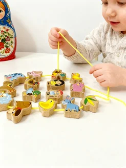 Шнуровка для детей развивающая деревянная домашние животные