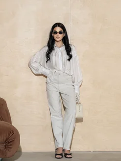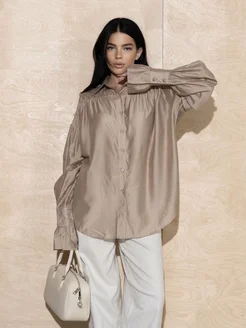 Рубашка блуза нарядная с рюшками бежевая