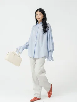 Рубашка блуза нарядная с рюшками голубая