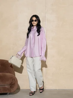 Рубашка блуза нарядная с рюшками розовая