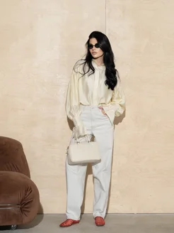 Рубашка блуза нарядная с рюшками нежно желтая