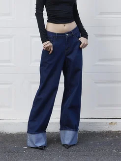 Джинсы широкие прямые классические с подворотами клеш