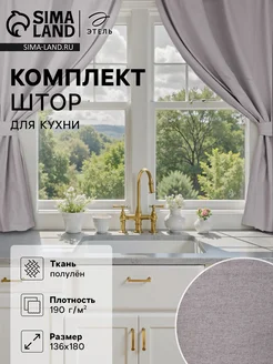 Серые шторы для кухни, 130х180 см, 70 хлопок, 30 лен