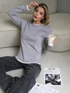 Лонгслив удлиненный двухслойный свободный кофта оверсайз