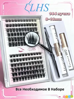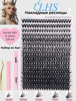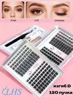 Набор пучковых накладных ресниц с клеем изгиб D, 30D 40D