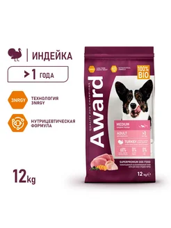 Для взрослых собак средних пород с индейкой и курицей 12кг