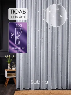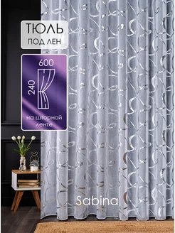 Тюль 500х240 готовый на ленте под лен с рисунком