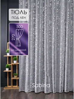 Тюль 500х270 готовый на ленте под лен с рисунком