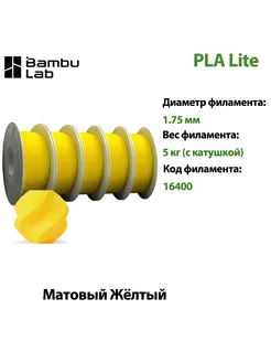 Пластик для 3Д принтера Pla Lite 5 кг Матовой желтый