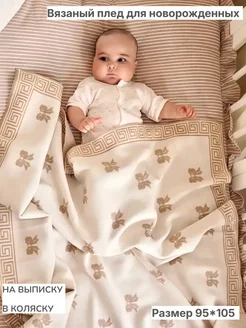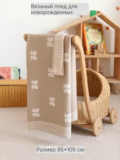 Плед вязаный для новорожденного малыша в коляску на выписку