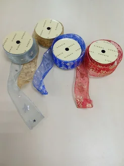 Лента упаковочная Новогодняя 4см*150 см 4 шт