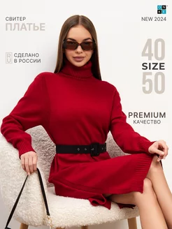 Платье теплое женское оверсайз свитер вязаное с горлом