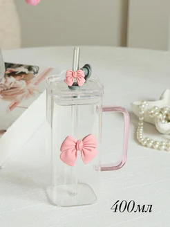 Стеклянный стакан с бантиком и со стеклянной трубочкой