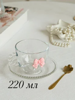 Чайная пара с бантом набор чашка блюдце и ложка