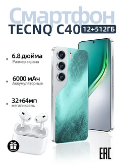 Смартфон TECN0 C40 12+512 ГБ Новинка Телефон