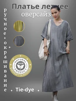 Платье летнее оверсайз из рами и хлопка ручное окрашивание