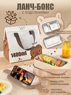 Ланч-бокс 1400мл с отделениями нерж вкладками