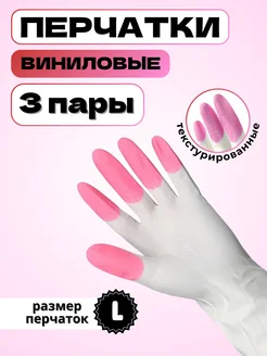 Перчатки резиновые хозяйственные, 3 пары, размер L