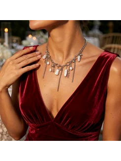 Колье чокер на шею вечерний с подвесками цепями и жемчугом