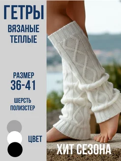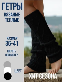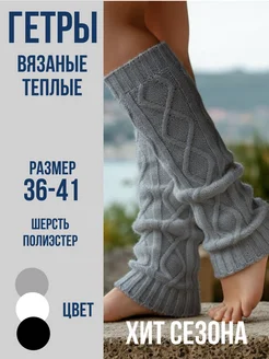 Гетры теплые шерстяные вязаные косичкой