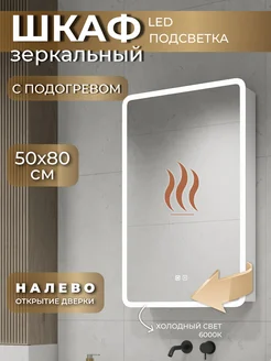 Зеркало-шкаф 500х800 левый с холодной подсветкой подогревом