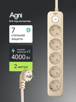 Сетевой фильтр с предохранителем мощный 5 розеток 2 метра