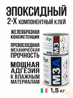 Двухкомпонентный эпоксидный клей густой, прозрачный, 1,5 кг